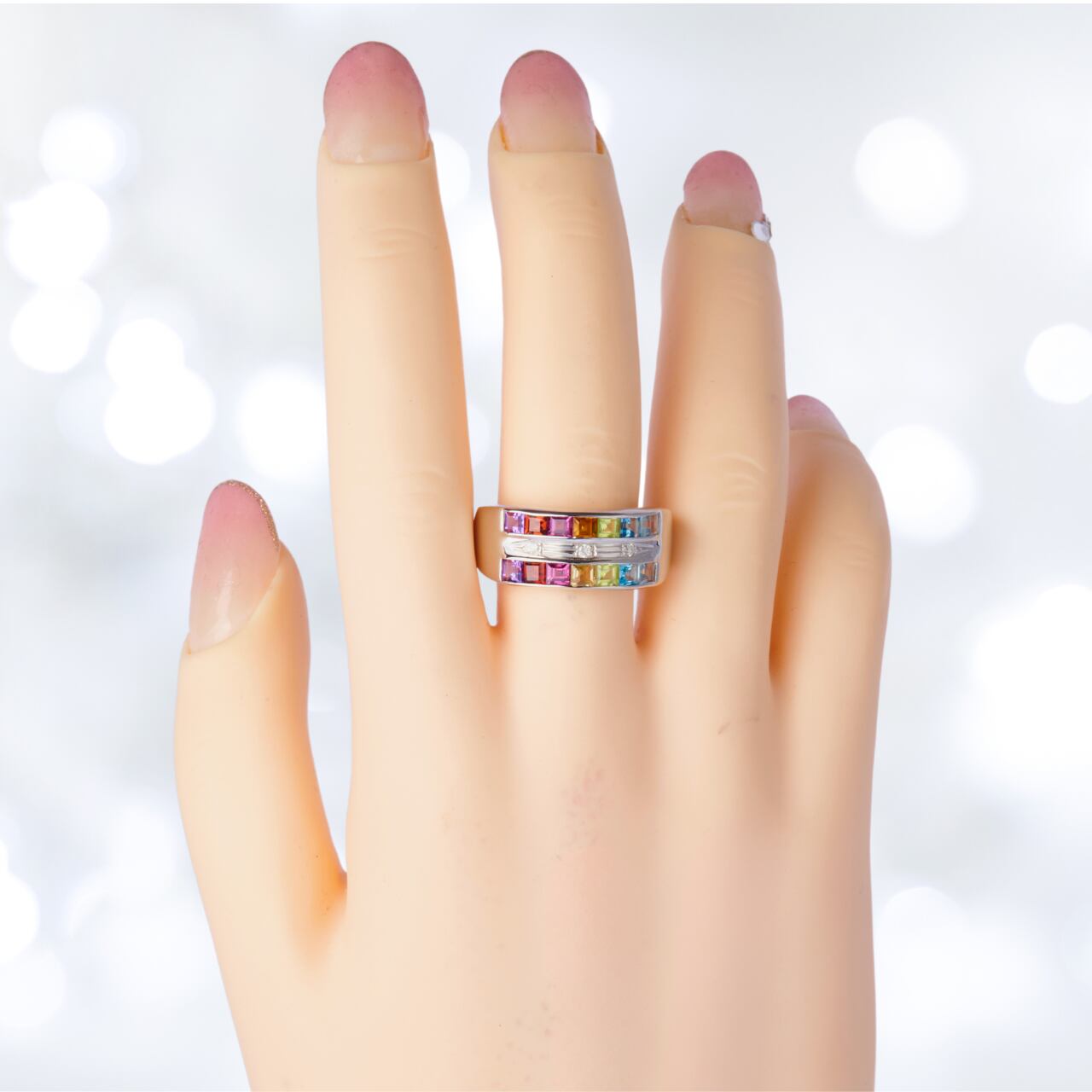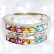 こちらのリングは、7色の宝石を使用したアミュレットリングです。